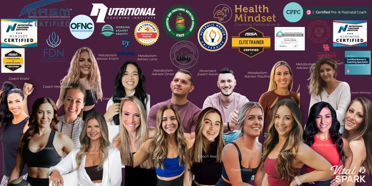 Vanessa is the Founder and CEO of Vital Spark. After graduating from the University of Georgia and spending a few years in Advertising and Accounting, she realized that her true passion was helping women rediscover how great they can feel in their bodies with nutrition & fitness. After having spent years battling her weight and disordered eating, a flame sparked within her wanting to help other women discover freedom in their bodies too. She started online coaching in 2019, but it quickly grew from a passion project to a 7-figure business with multiple other specialty coaches. Over the course of her career, she found herself struggling with hormonal imbalances and gut dysfunction, which led her to further her education and expertise into functional health. Vanessa is a Certified Personal Trainer, Certified Nutrition Coach, Certified Hormone Health Coach, Certified Functional Health Coach, and Certified Health Mindset Coaching Specialist, and she loves to spend her free time riding horses, playing with her dog, or binge-watching Netflix with her husband, Omar.